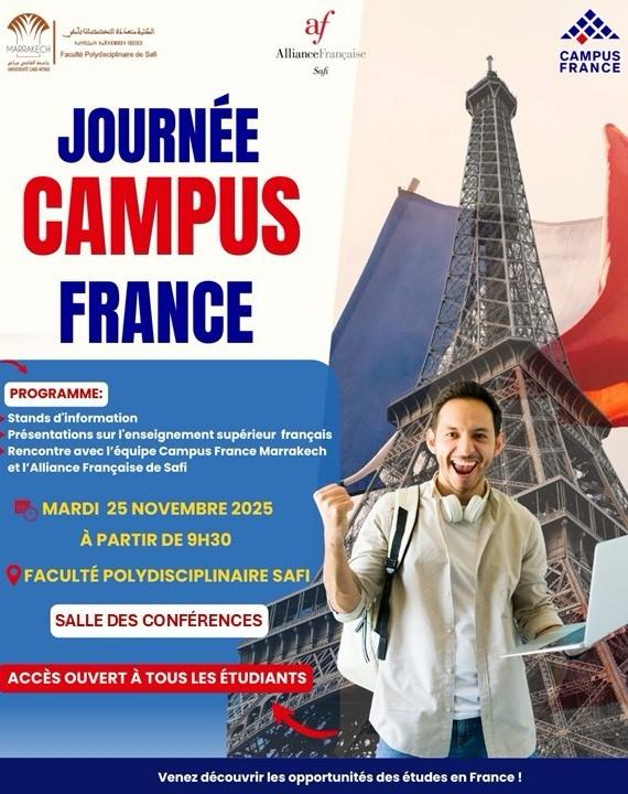 La Faculté Polydisciplinaire de Safi organise une Journée Campus France le mardi 25 novembre 2025 à partir de 10h30, à la salle des conférences.