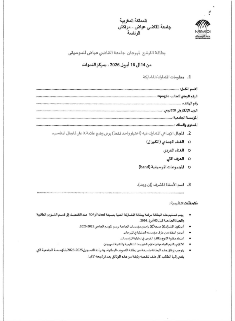 ✨ فرصة لإبراز مواهبكم الموسيقية والمساهمة في إغناء الحياة الثقافية داخل الجامعة.
